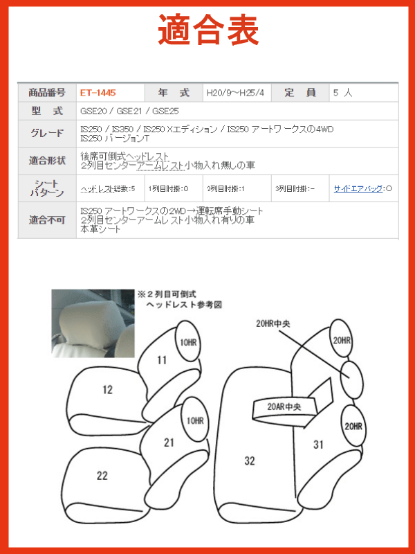 レクサスIS/H20.9〜H25.4/GSE20,GSE21,GSE25/2列目センターアームレスト小物入れ無し/クラッツィオ ECTR シートカバー/アイボリー,タンベージュ,ライトグレー,ブラック/clazzio クラッチオ/ET-1445