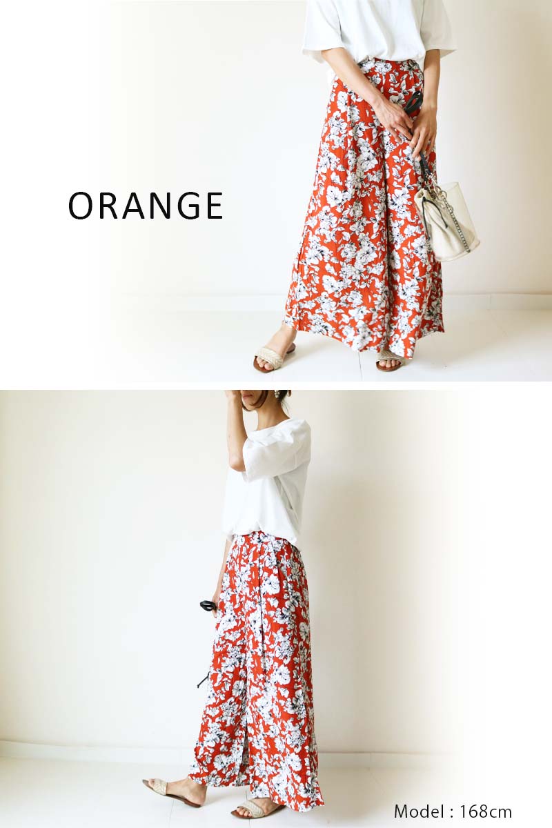 素材レーヨン 100%サイズウエスト:65cm(ゴム上がり最大94cm) 総丈:93.5cm 裾幅:47cmカラーオレンジ / ブラック伸縮性なし透け感なし裏地あり※注意事項※※平置きでの採寸実寸のため、多少の誤差が生じる場合がございます。